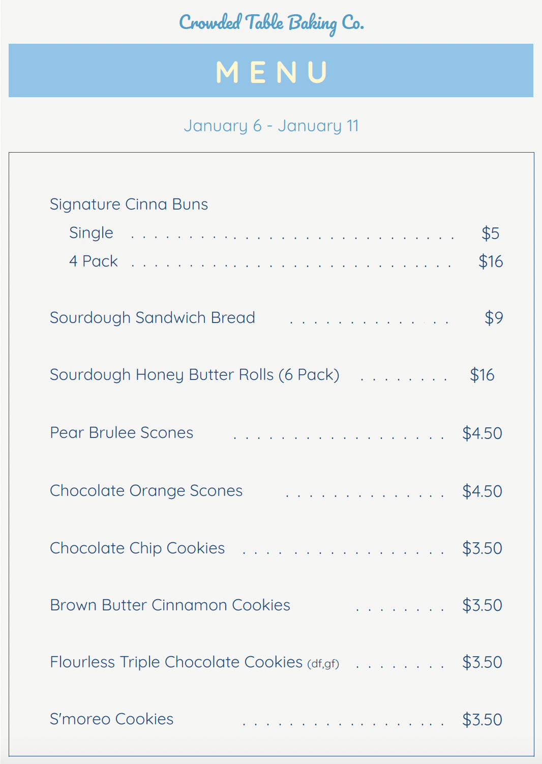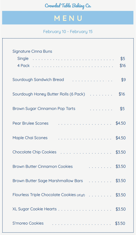 Crowded Table is CLOSED this week (Dec 1 - Dec 7) as we prep for a private catering event.